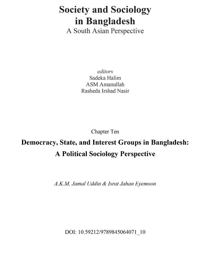 Uddin , A.K.M. Jamal, AU. Democracy, State, and Interest Groups in Bangladesh: A Political Sociology Perspective . Society and Sociology in Bangladesh: